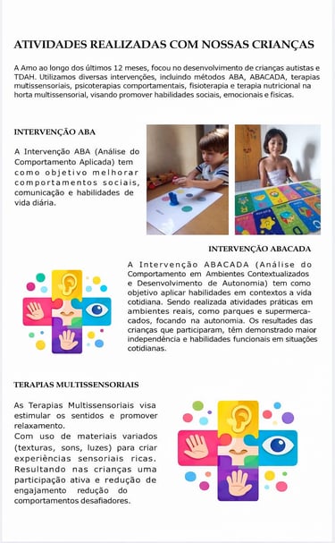 A AMO nasceu em 2023 para apoiar crianças autistas e neurodiversas , e com alegria e evolução nossas crianças seguem a dois anos conosco , atendemos de 0 a 17 anos , somos pequenos ainda mas o nosso sonho é grande , contamos com voce para nos ajudar fazendo a sua doação .