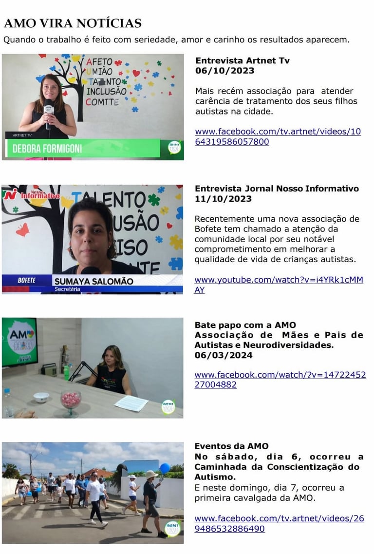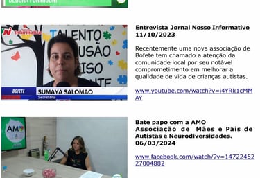Desde 2023, participamos de entrevistas , podcast , rádio , sempre representando a força e a coragem de mães que lutam todo dia por inclusão e direitos aos neurodiversos